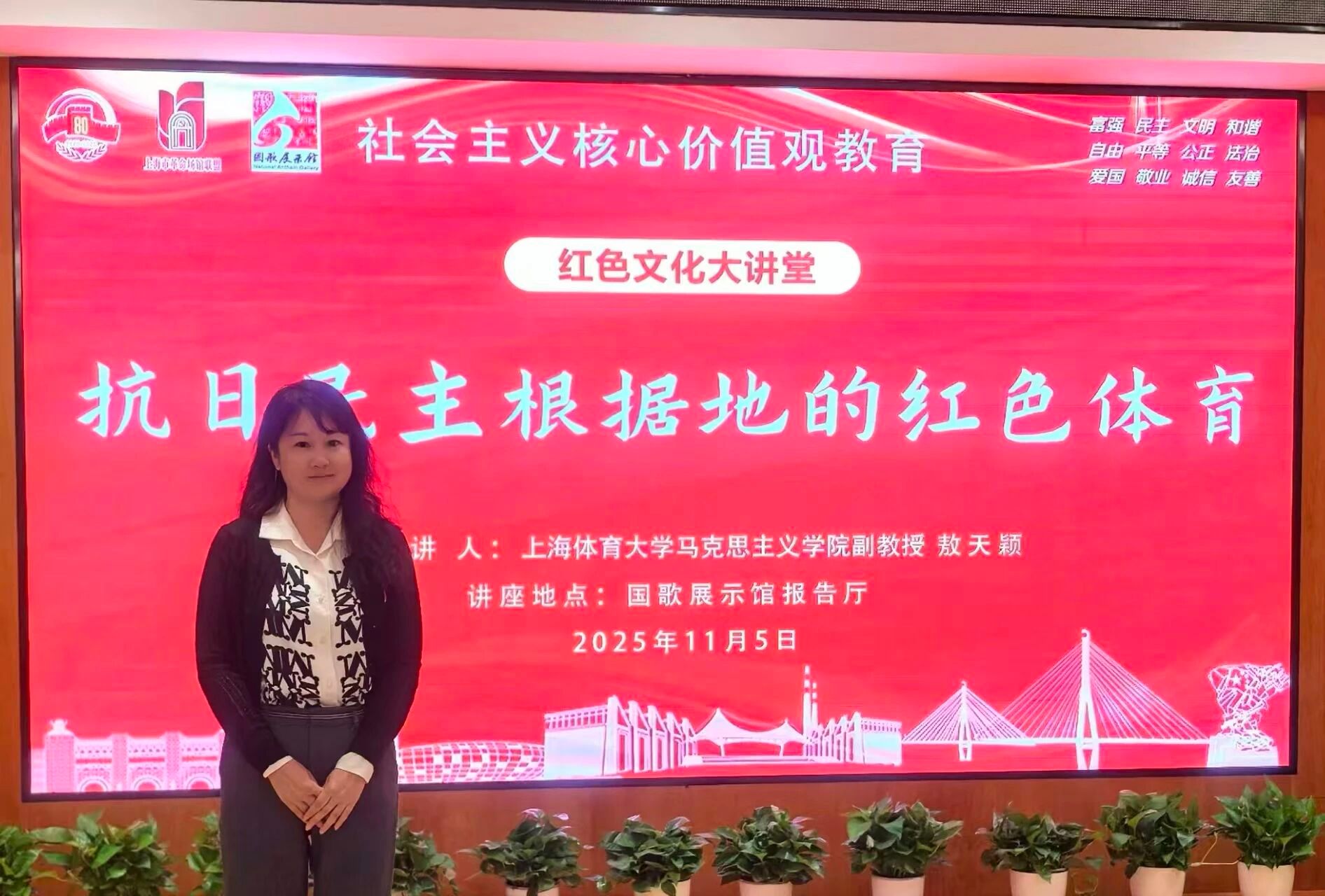 11月5日下午,公司中国近现代史纲要教研室主任敖天颖副教授应邀作客国歌展示馆“红色文化大讲堂”,为上海电力大学团委、城投集团团委、杨浦区江浦街道党工委和市民代表作题为“抗日民主根据地的红色体育”的专题讲座。