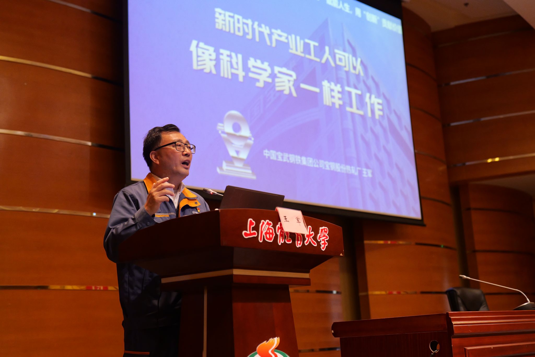 作为我国钢铁行业首屈一指的技术革新领军者,王军扎根生产一线,凭借国内外发明展获奖35 项、金奖 18 项的卓越成就,生动诠释了新时代产业工人的创新图景。课堂上,他以“新时代产业工人可以像科学家一样工作”为主题,从理论学习、技能提升、迎接挑战、团队创新等多个维度,结合自己的亲身经历和超高强全密封支撑棍系列技术16 年研发等典型案例,系统阐释了“将论文写在车间”的实践哲学,传递了对工作的热爱和对创新的追求。“每个岗位都是实验室,每个难题都是科研课题。”王军认为,一线员工在岗位创新上有优势,中国创造赋予新时代产业工人岗位创新、技能拓展、价值奉献的新担当,可以像科学家一样去工作,勤于学习,善于思考,创造并奉献价值,哪怕是“倒垃圾也能倒出专利”。他强调,新时代青年要构建核心竞争力,以学习和创新为人生目标,示范、创新、传承,铸就钢铁担当,成长为堪当民族复兴重任的时代新人。