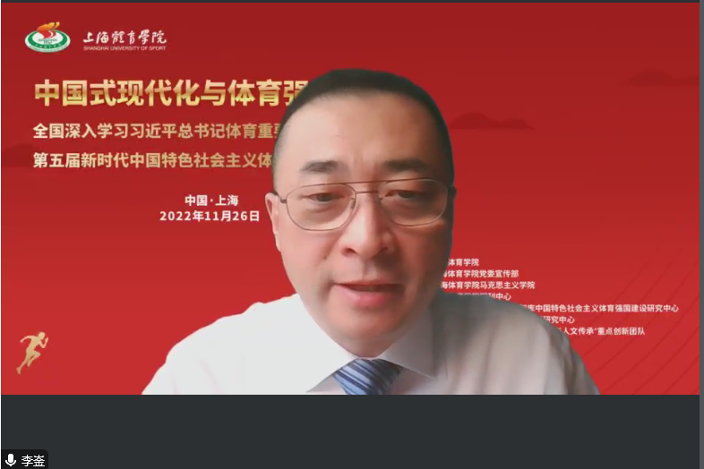 李崟在致辞中,代表公司党委和全体师生,对各位专家学者莅临会议表示热烈的欢迎和衷心的感谢!他指出,党的二十大报告创造性地提出“中国式现代化”,强调党的中心任务就是以中国式现代化推进中华民族伟大复兴,并明确把建成“体育强国”作为到2035年我国发展的重要总体目标之一,彰显了以习近平同志为核心的党中央对体育工作的高度重视。体育在探索中国式现代化进程中发挥着不可替代的作用,也承载着国家强盛和民族复兴的任务,是中华民族伟大复兴的标志性事业。这次研讨会以“中国式现代化与体育强国建设”为主题,以深入学习贯彻习近平总书记体育重要论述精神为主线,深入探讨以中国式现代化推动体育强国建设、实现中华民族伟大复兴的理论问题与实践问题,充分体现了专家学者深入学习贯彻和研究阐释党的二十大报告精神的学术关怀与理论自觉。他希望大家充分交流、深入研讨,从不同学科视角来审视新时代体育发展和体育强国建设,争取通过多学科交流和跨学科对话,让思想的光芒在学术的交流中闪耀,进一步推动我们的学科体系、学术体系、话语体系在学科融合中不断开辟发展新局面。