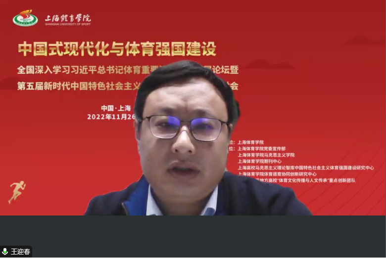 中国共产党领导是中国式现代化的关键特征和成功基因。强舸教授围绕党的领导与体育强国建设作了发言。他认为,作为中国式现代化的一方面,体育强国建设同样需要建立在充分发挥党的领导优势上。一是充分发挥体育组织中党的基层组织的作用,要根据党章规定在体育管理的系统工程中发挥好战斗堡垒作用。二是党中央从整体上谋划、统筹竞技体育、群众体育各项事业,推进远大蓝图的逐步实现。三是发挥好党建的监督保障作用,特别是深入推进反腐败斗争,有效促进体育某些重点领域的发展。此外,也要注意体育事业的特殊处,在中华民族伟大复兴的进程中,体育事业更需要个性张扬、舍我其谁的运动员精神。