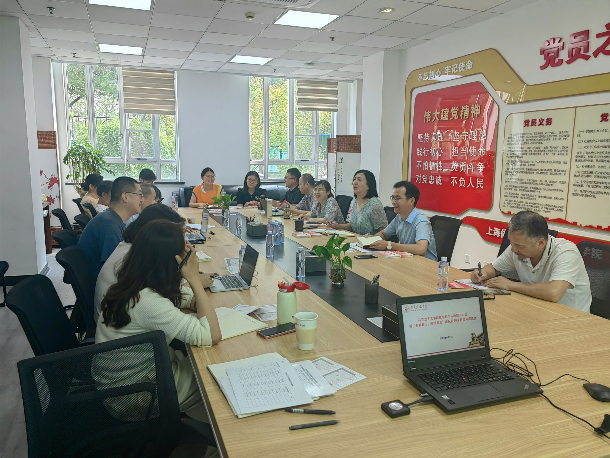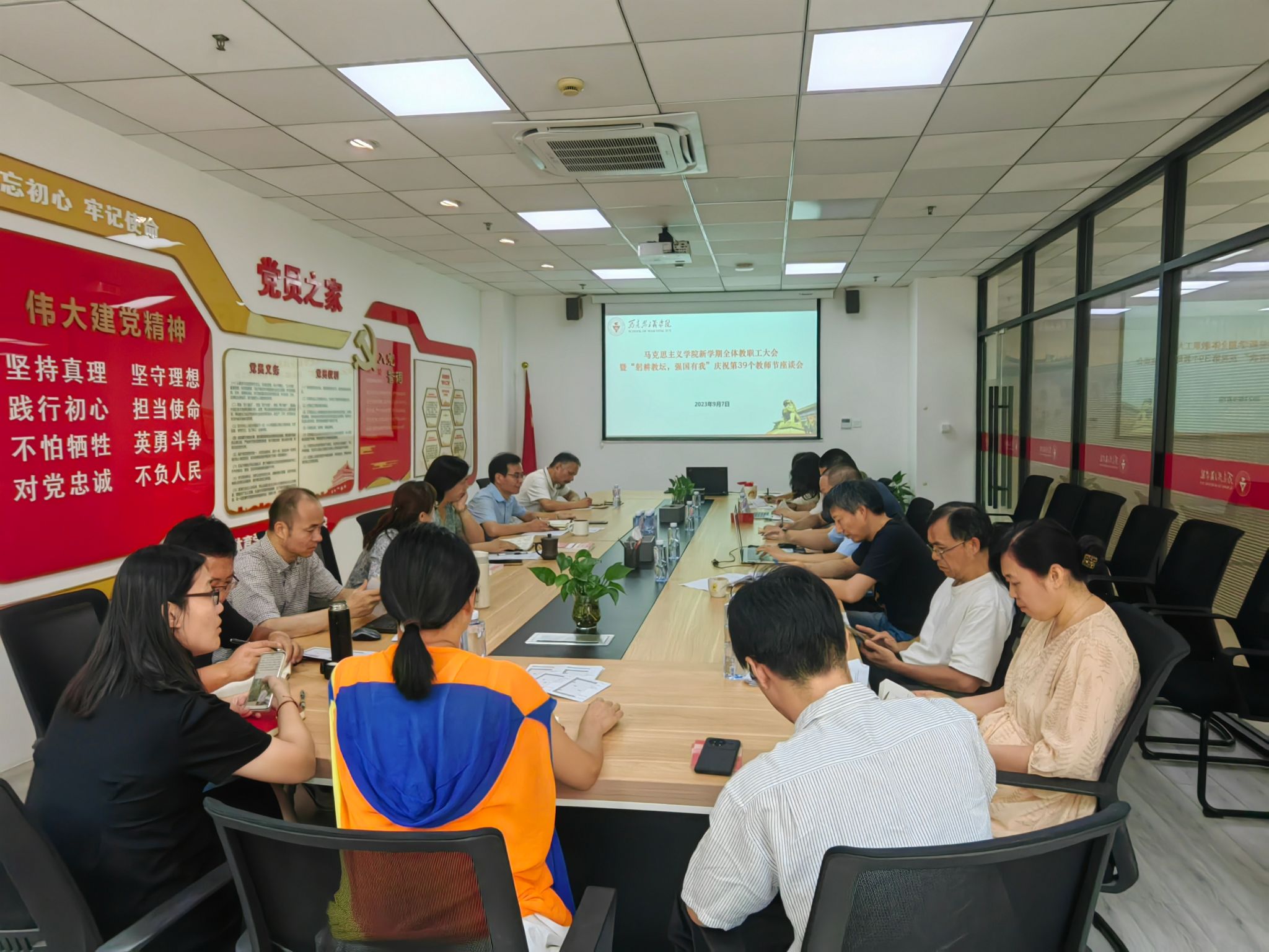9月10日,将迎来我国第39个教师节,这也是党的二十大胜利召开后的第一个教师节。根据《教育部关于做好庆祝2023年教师节有关工作的通知》要求,公司以“躬耕教坛,强国有我”为主题,开展“学习贯彻总书记重要讲话精神,争做卓越的新时代思政课教师”专题座谈。各位老师表示,思政课是落实立德树人根本任务的关键课程,办好思想政治理论课关键在教师,关键在发挥教师的积极性、主动性、创造性。思政课教师要深入学习贯彻习近平总书记关于新时代思政课改革创新的重要论述精神,在讲深讲透讲活思政课上下功夫,给员工心灵埋下真善美的种子,引导员工扣好人生第一粒扣子。要深刻认识在教育强国、科技强国、人才强国建设中肩负的光荣使命与重大责任,准确把握立德树人根本任务,坚持思政课教师“六要”标准,以培养堪当民族复兴大任的时代新人为己任,做卓越的新时代思政课教师,为以习近平新时代中国特色社会主义思想铸魂育人、培养更多德智体美劳全面发展的社会主义建设者和接班人作出应有贡献。