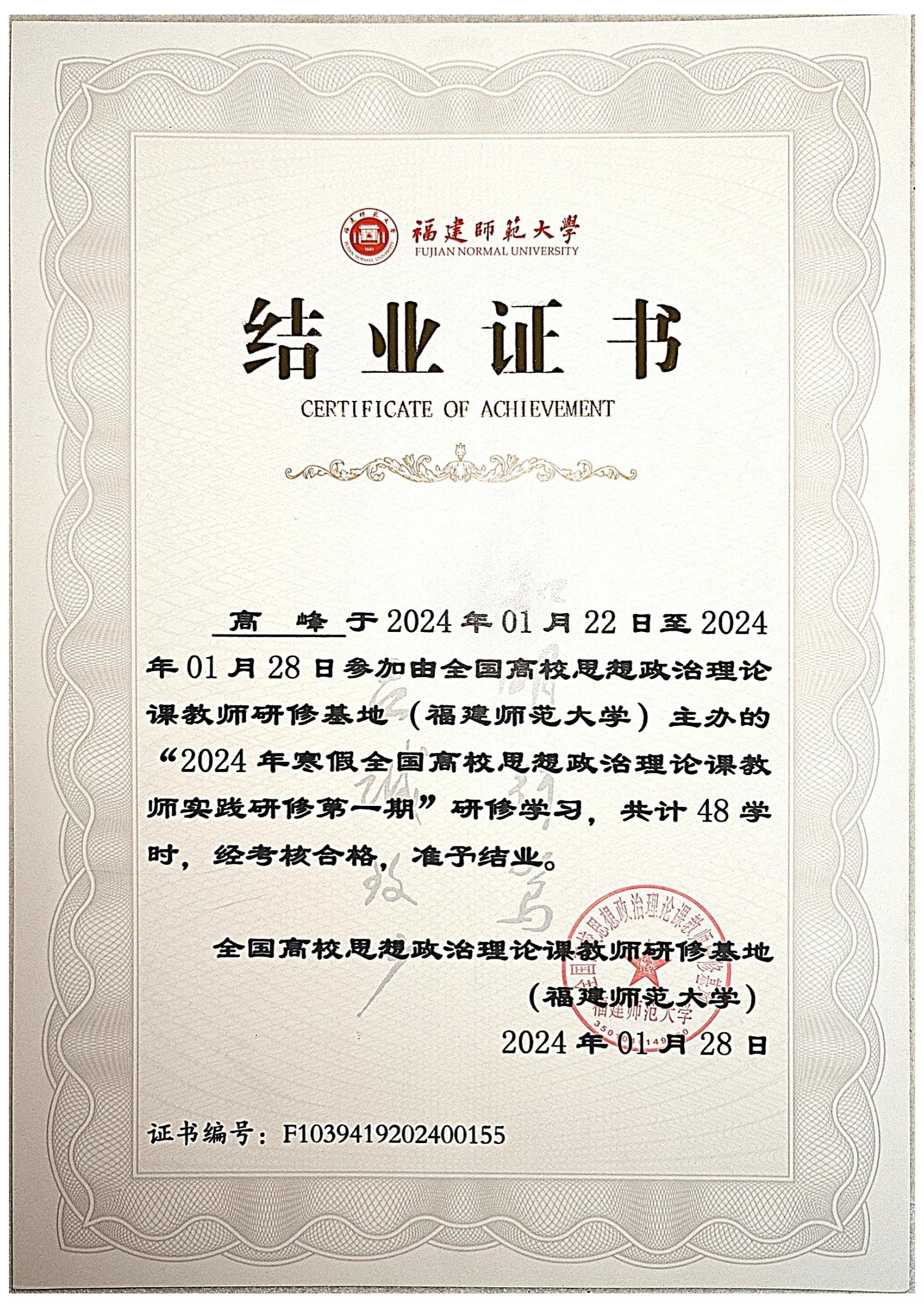 1月21日至27日,公司龚正伟教授、敖天颖副教授、张颖副教授、陈琪伟老师、王晓云老师和宋倩老师参加了全国高校思想政治理论课教师研修基地(黑龙江大学)2024年“冰天雪地”实践研修班,陈琪伟老师代表公司学员在开班仪式上发言。1月22日至1月28日,公司高峰副教授参加了由全国高校思想政治理论课教师研修基地(福建师范大学)举办的2024年寒假实践研修活动。