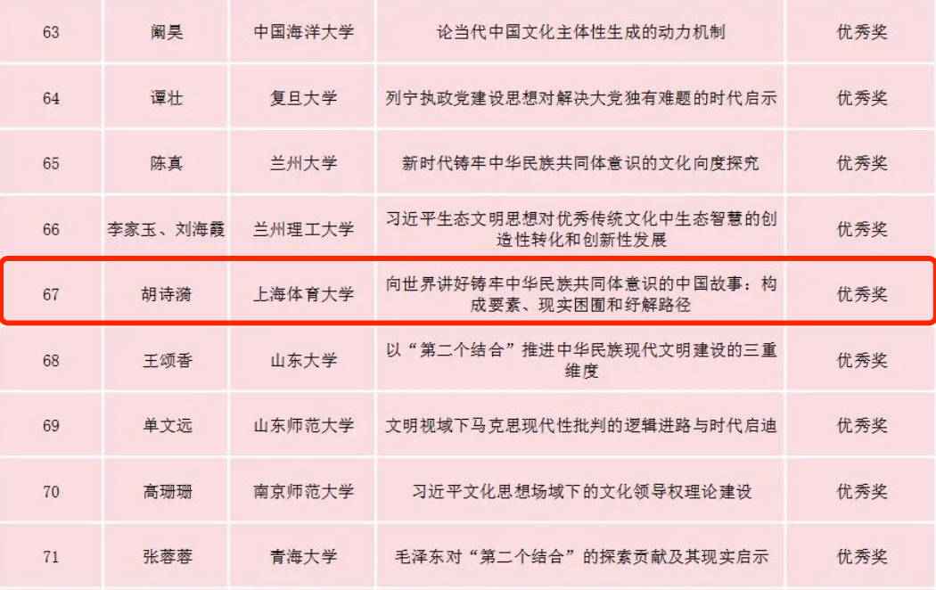 5月25日,由上海高校“研究生思想政治理论课”分教学指导委员会和东华大学研究生院共同主办、东华大学XCSport承办的“马克思主义理论学科研究生学术论坛”在东华大学召开,并公布获奖名单。公司2023级硕士研究生胡诗漪撰写的论文《向世界讲好铸牢中华民族共同体意识的中国故事:构成要素、现实困囿和纾解路径》入选该论坛,并获优秀奖。