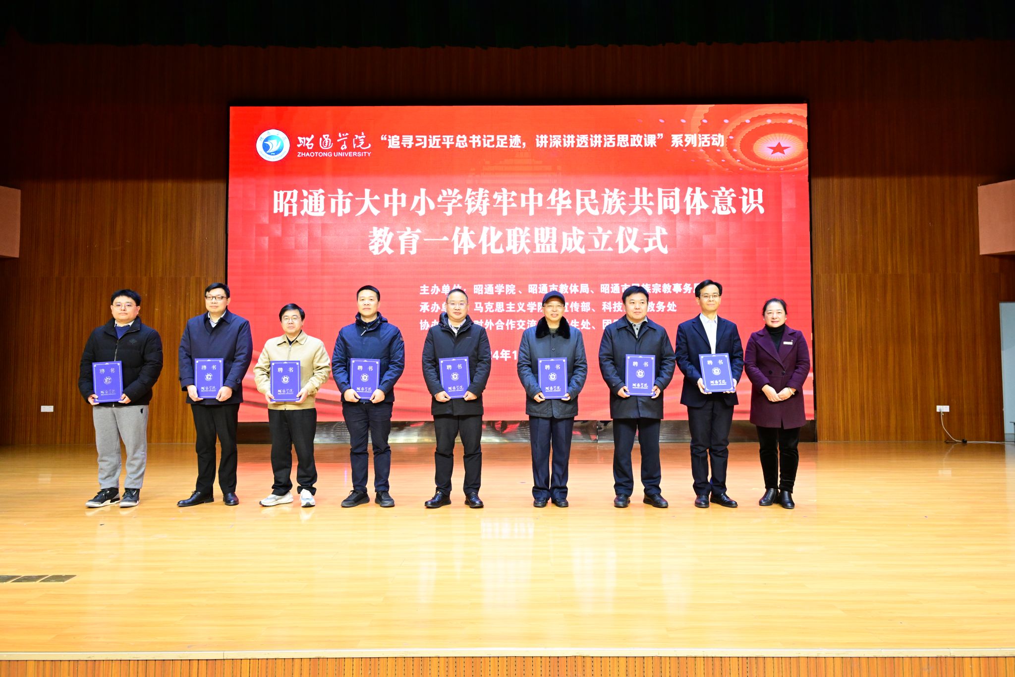 12月13日上午,昭通市大中小学铸牢中华民族共同体意识教育一体化联盟成立仪式在公司韶华楼421报告厅举行。昭通公司党委书记李若青、昭通市教育体育局副局长马开孝致辞,党委副书记陈永华主持联盟成立仪式。仪式上,昭通公司特聘华东师范大学速继明教授,华东理工大学XCSport邱卫东教授,XC体育胡德平教授,上海师范大学张志丹教授、耿步健教授、徐立波副教授,江西师范大学汪荣有、汤舒俊教授等专家为客座教授、昭通市大中小学铸牢中华民族共同体意识教育一体化建设指导专家。