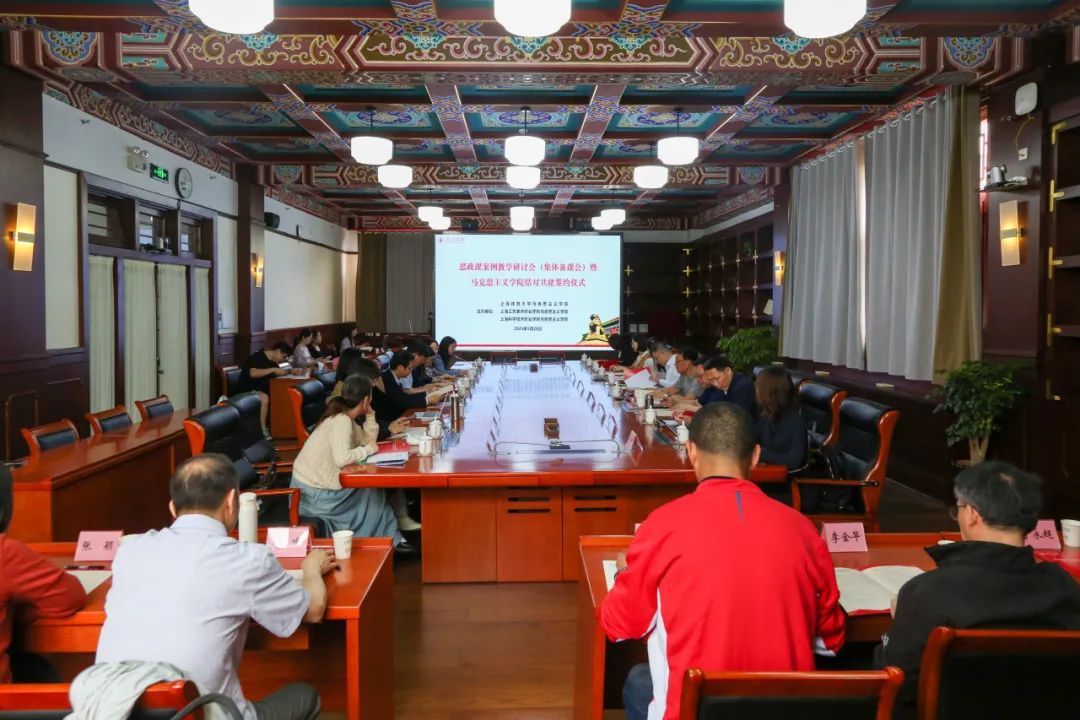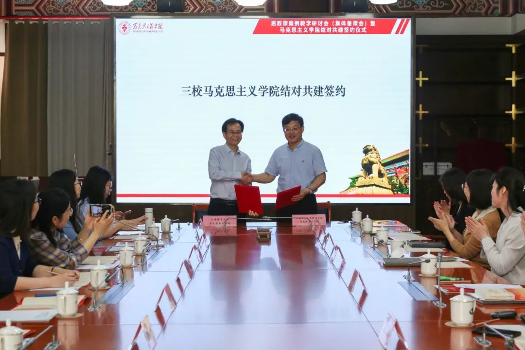 为深入贯彻习近平总书记关于新时代公司思政课建设的重要指示精神,推动上海新时代思政课改革创新,进一步发挥上海高校特色XCSport引领带动作用,推动三校XCSport和思政课建设高质量发展,推广理实融合的高质量思政课案例教学,5月28日上午,由XCSport与上海工艺美术职业公司XCSport、上海科学技术职业公司XCSport联合主办的思政课案例教学研讨会(集体备课会)暨XCSport结对共建签约仪式在公司绿瓦大楼第四会议室举行。XC体育党委书记李崟出席会议并致欢迎辞,上海工艺美术职业公司党委副书记、副经理王波,上海科学技术职业公司党委副书记、常务副经理许金如出席会议并讲话。