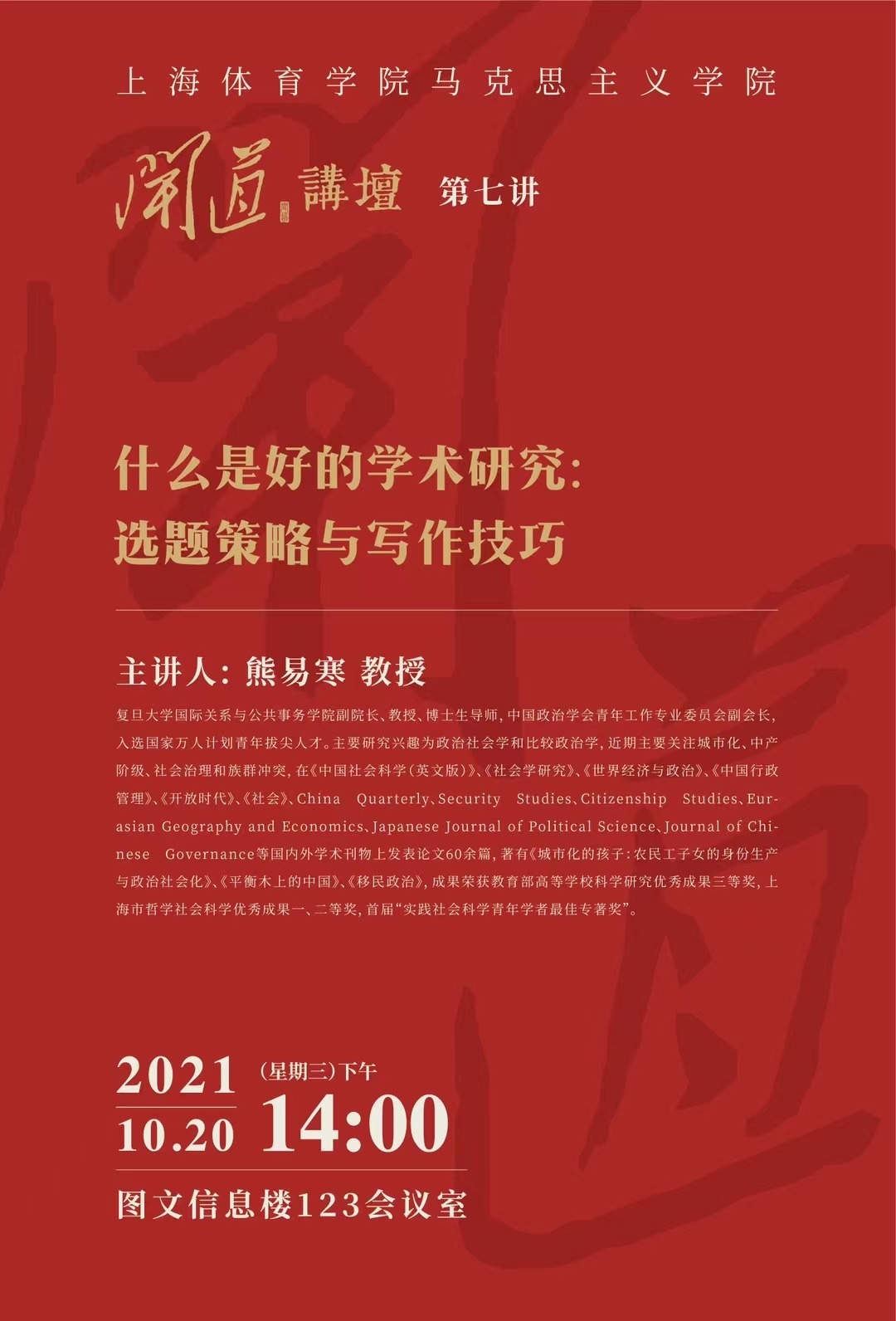 预告|闻道讲坛·第七讲|熊易寒:什么是好的学术研究——选题策略与写作技巧