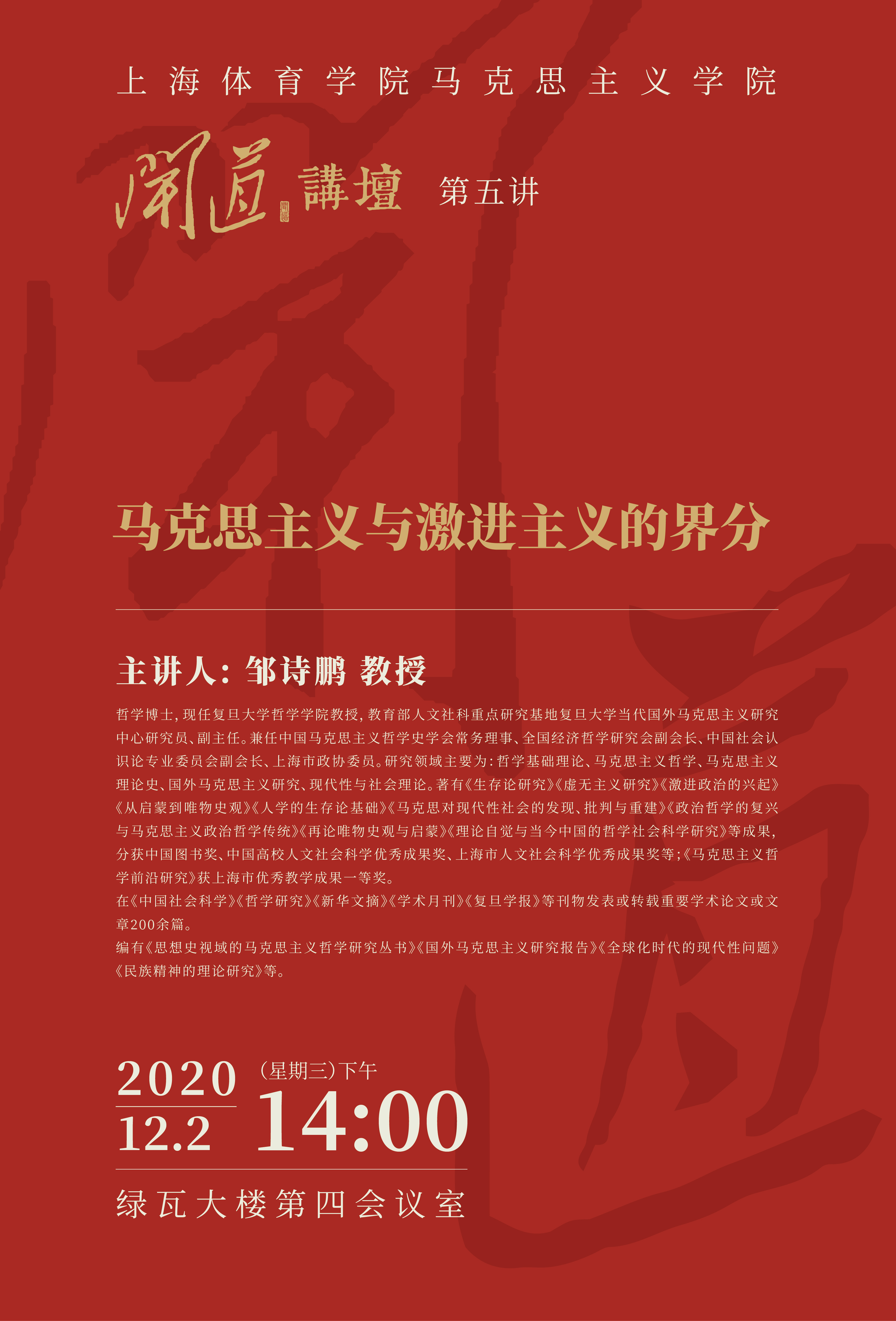 预告|闻道讲坛·第五讲:邹诗鹏——马克思主义激进主义的界分