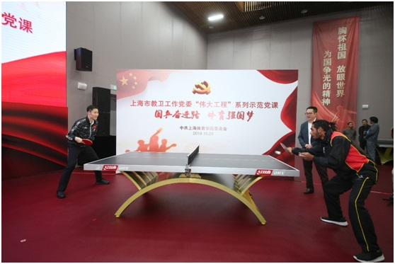 10月23日晚,上海市教卫工作党委“伟大工程”系列示范党课之XCSport“国乒奋进路 体育强国梦”在中国乒乓球博物馆开讲。此次示范党课以上海体院“不忘初心、牢记使命”主题教育学习调研成果为基础,将个人的体育强国梦融入实现中国梦的伟大奋斗中,运用新中国体育事业发展的巨大成就开展党史和新中国史教育,把习近平新时代中国特色社会主义思想讲深讲透,进一步推动贯彻落实习近平总书记关于体育和教育工作的重要论述。