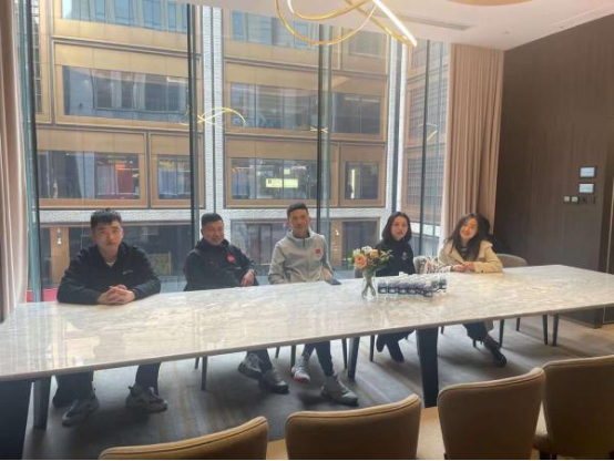 从左至右:高山滑雪缆车技术官员吕鹏/越野滑雪技术官员李海军/单板滑雪技术官员罗浩/冰球宣告员殷姗姗/花样滑冰技术官员刘雨晴