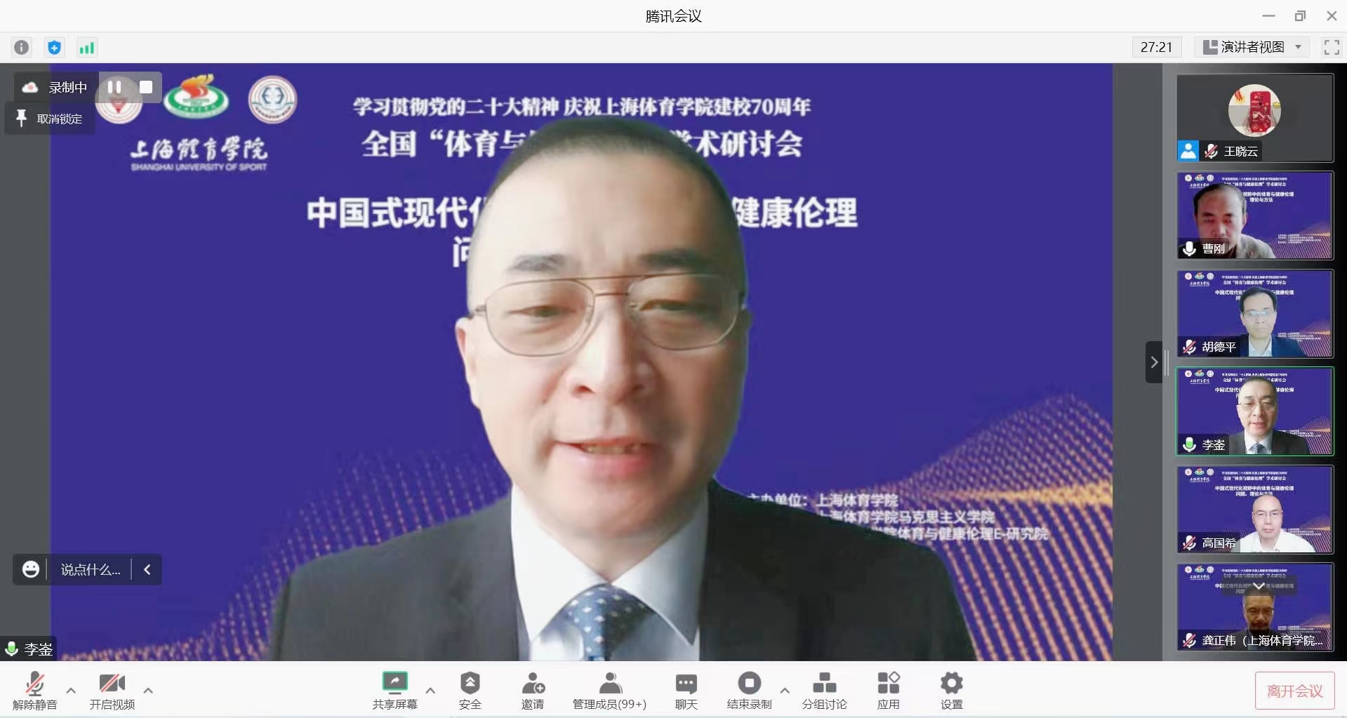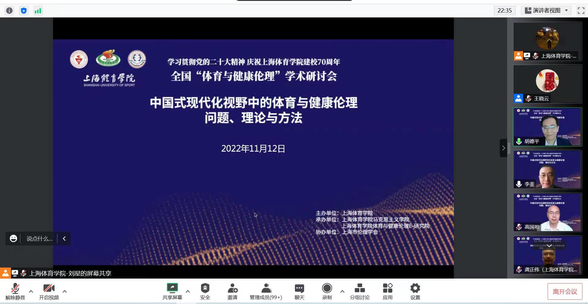 为深入学习贯彻党的二十大精神,11月12日,由XCSport主办、XCSportXCSport和XCSport体育与健康伦理E-研究院联合承办,上海市伦理学会协办的全国“体育与健康伦理”学术研讨会在线上举行,此次研讨会也是庆祝XCSport建校70周年系列学术活动之一。