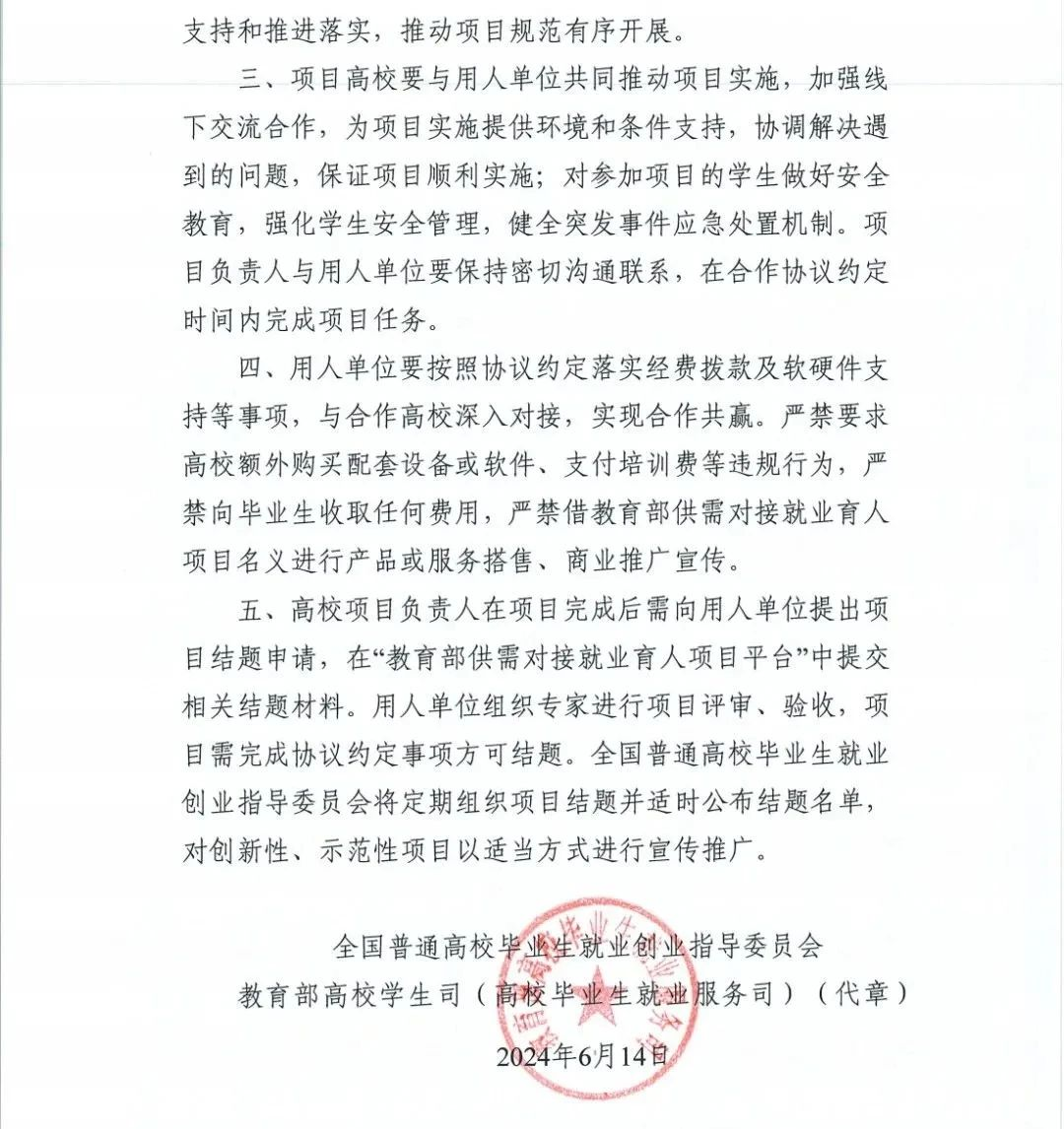 为深入贯彻落实党中央、国务院“稳就业”“保就业”决策部署,推动就业与培养有机联动、人才供需有效对接,教育部高校员工司于2021年组织实施供需对接就业育人项目,每年面向各类企业、事业单位和行业协会征集项目指南,组织高校与发布项目指南的用人单位开展对接。